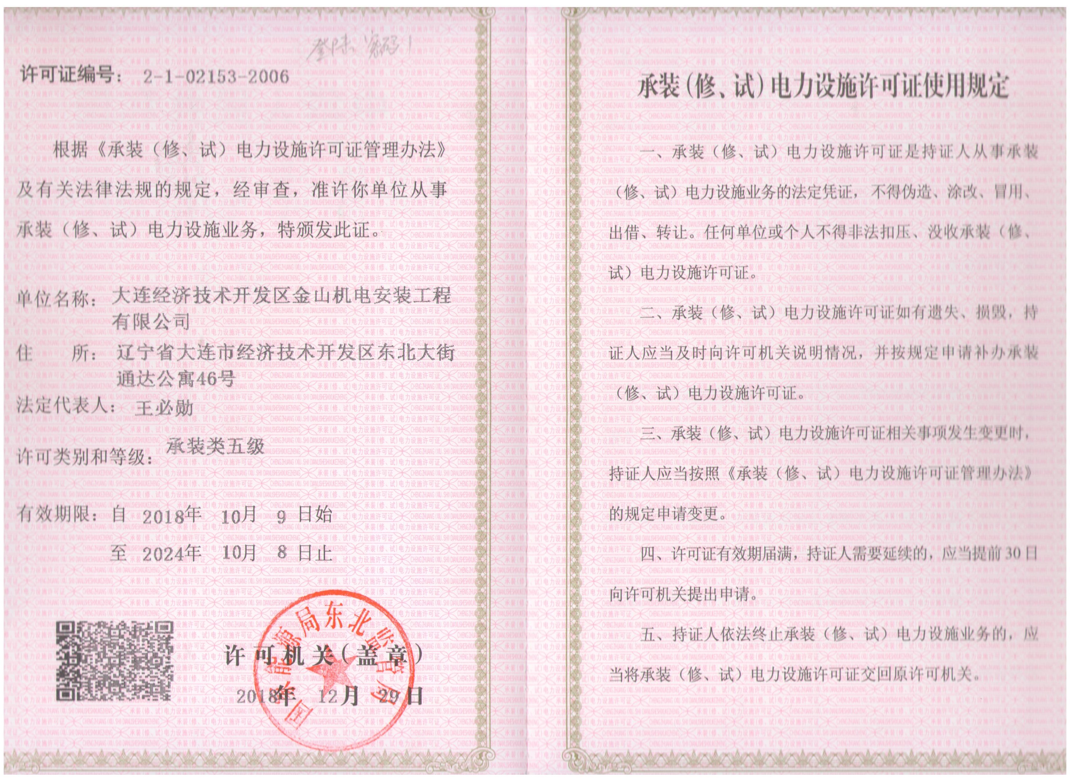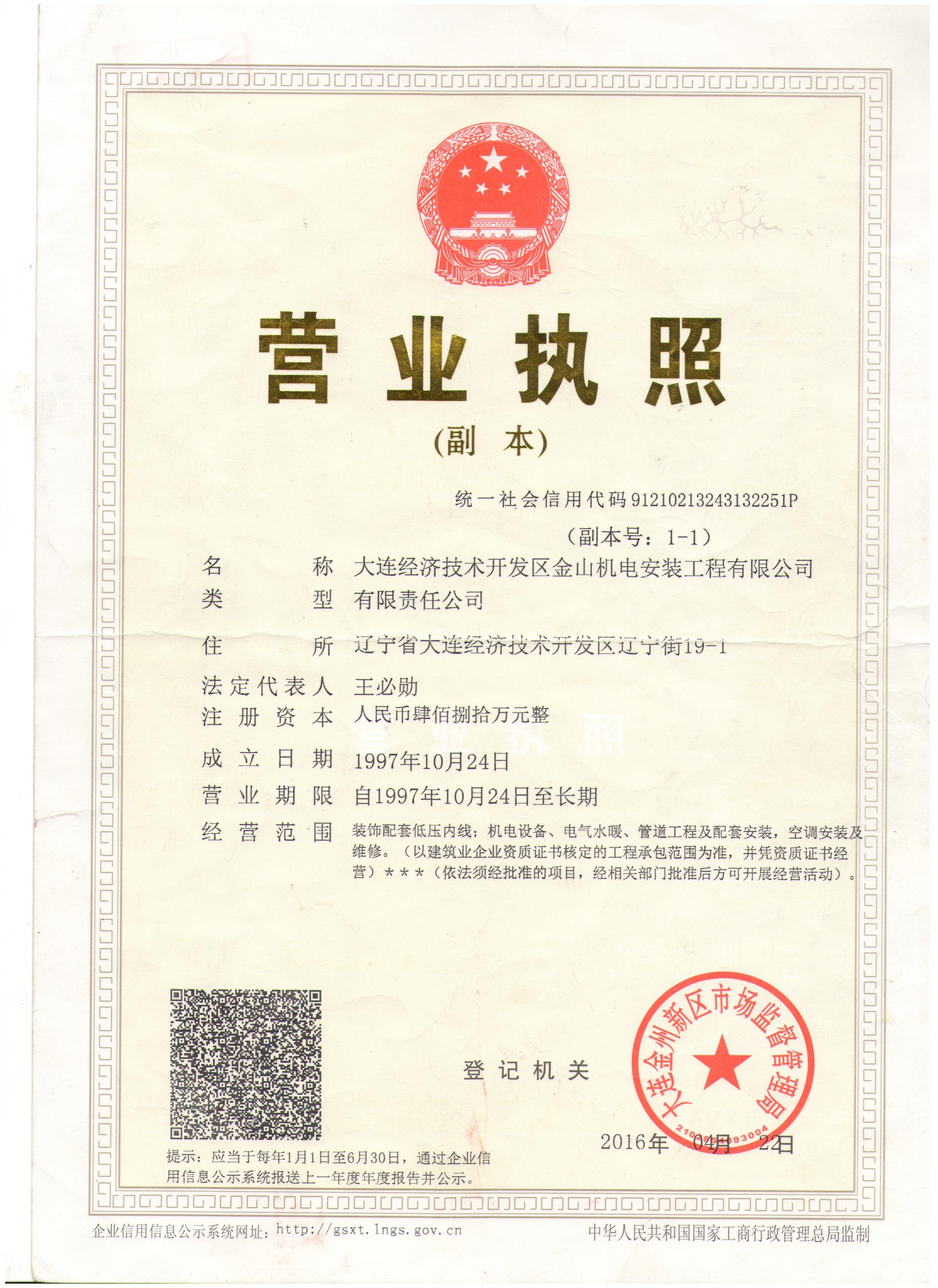 大連經濟技術開發(fā)區(qū)金山機電安裝工程有限公司